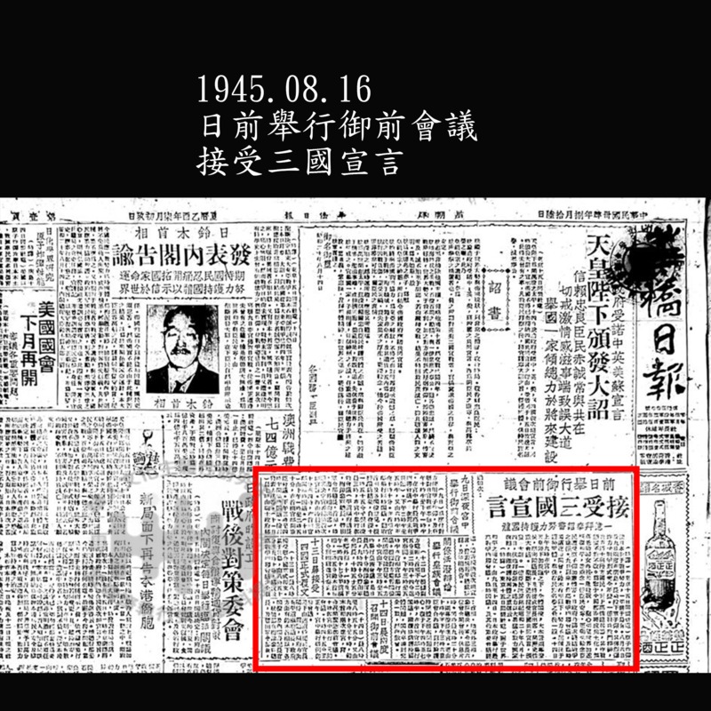 日本正式停戰文書十天內在日本簽署、日本接受三國宣言