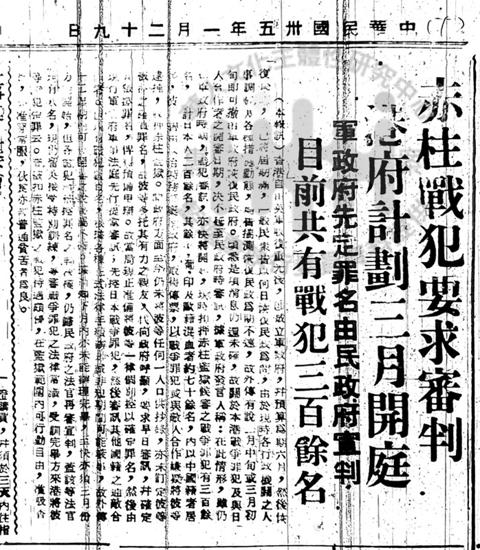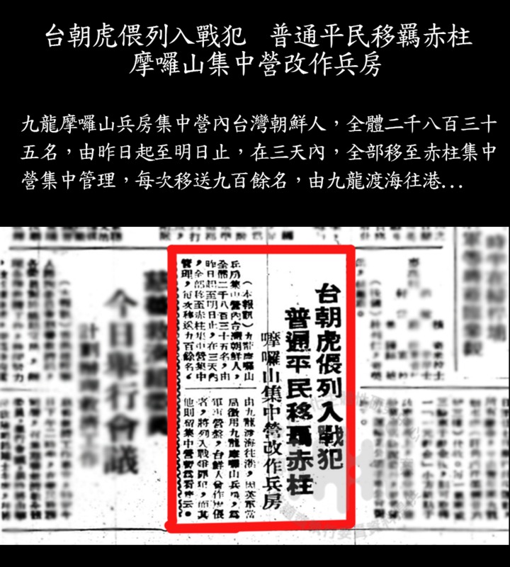 台朝虎倀列入戰犯 普通平民移聶赤柱