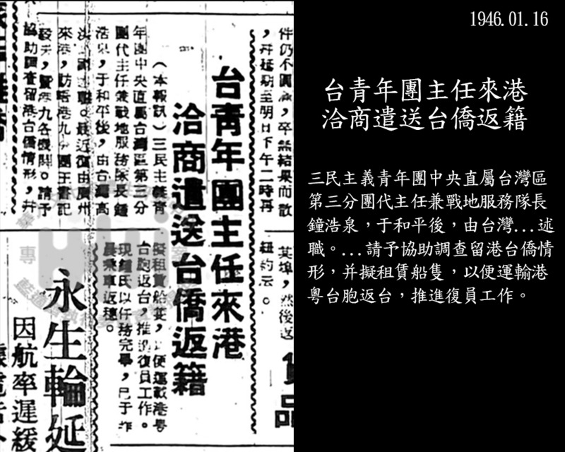 台青年團主任來港洽商遣送台僑返籍
