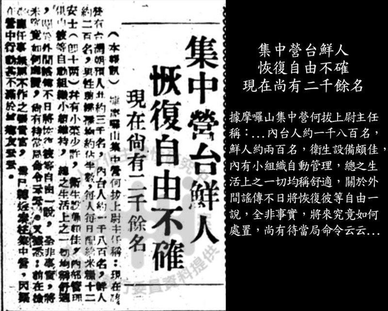 集中營台鮮人恢復自由不確