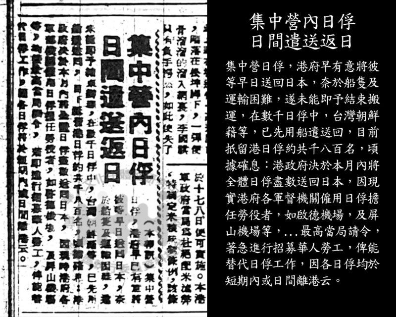 集中營內日俘日間遣送返日