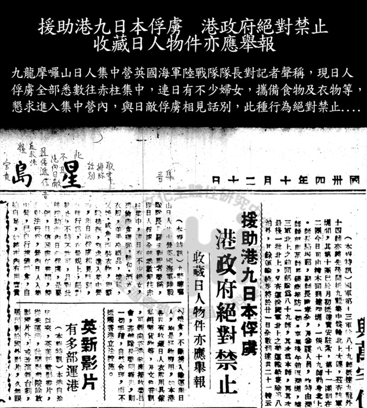 港政府絕對禁止援助港九日本俘虜